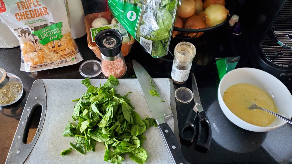 - Then combine the cheese and spinach and mix it altogether to the egg mixture.