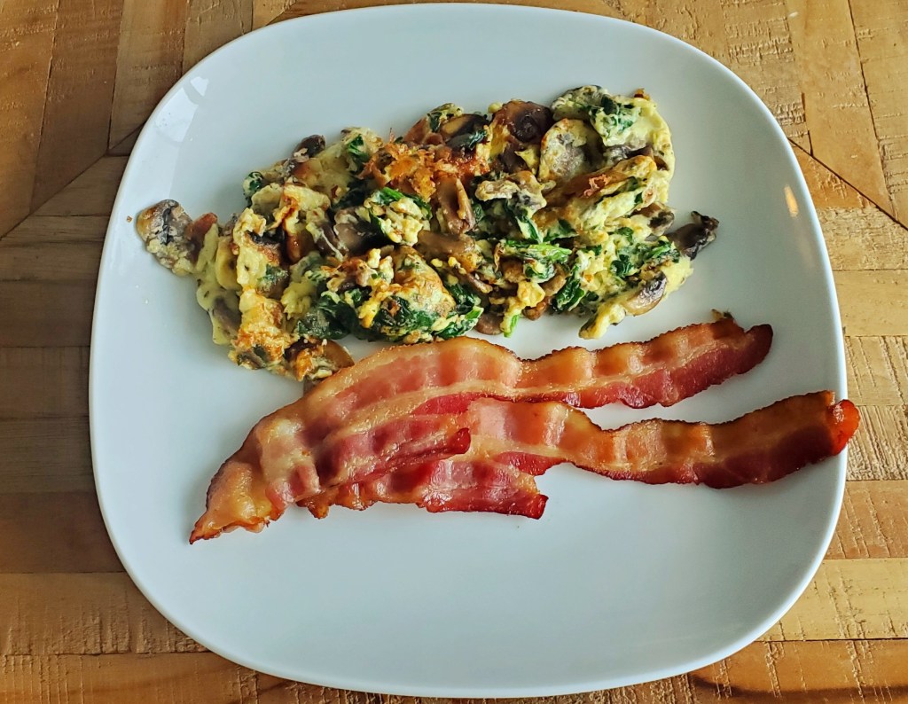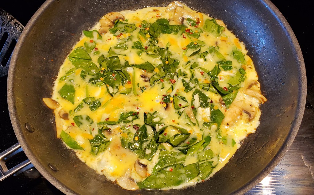 *If you want to make the scrambled egg version, just stir the egg mixture in the pan instead of flipping it. This will cook quickly; I would say 5 to 7 minutes should be good enough.