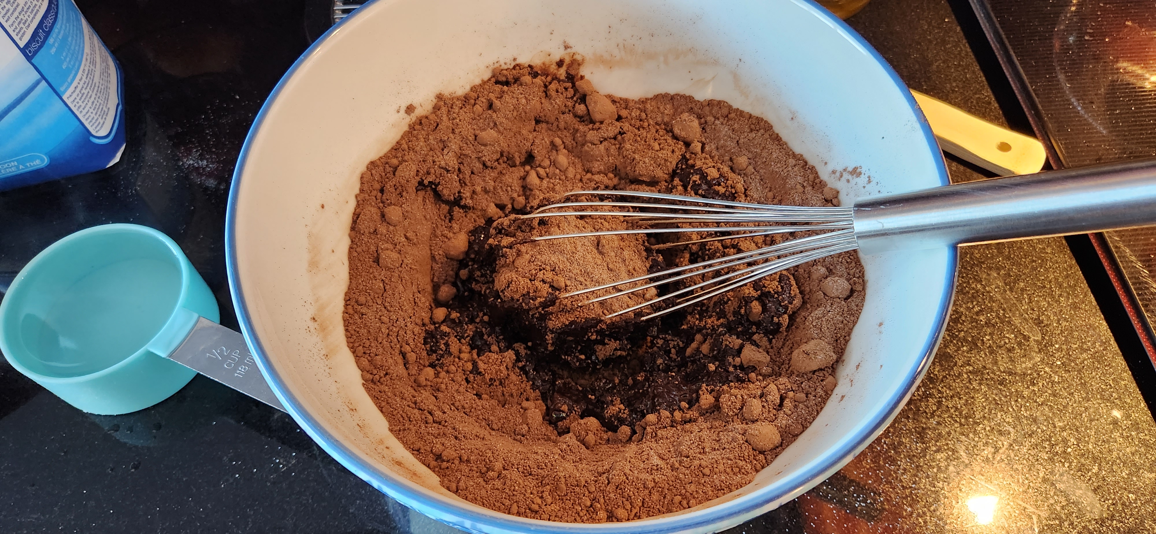 - Add cocoa powder, and sugar to a bowl, and mix it all together
