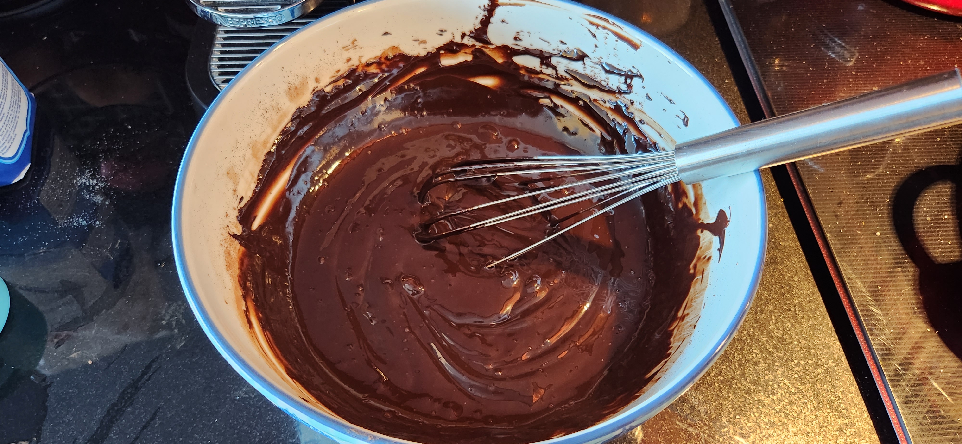 - The mixture will have a fudgy liquidy consistency, but once you add it to hot milk it will be wonderfully tasty.
