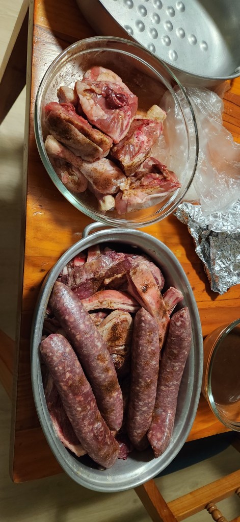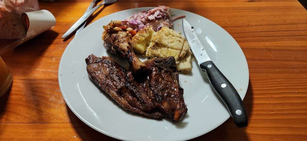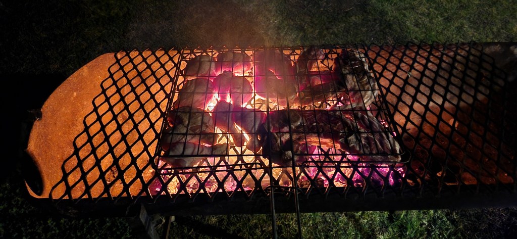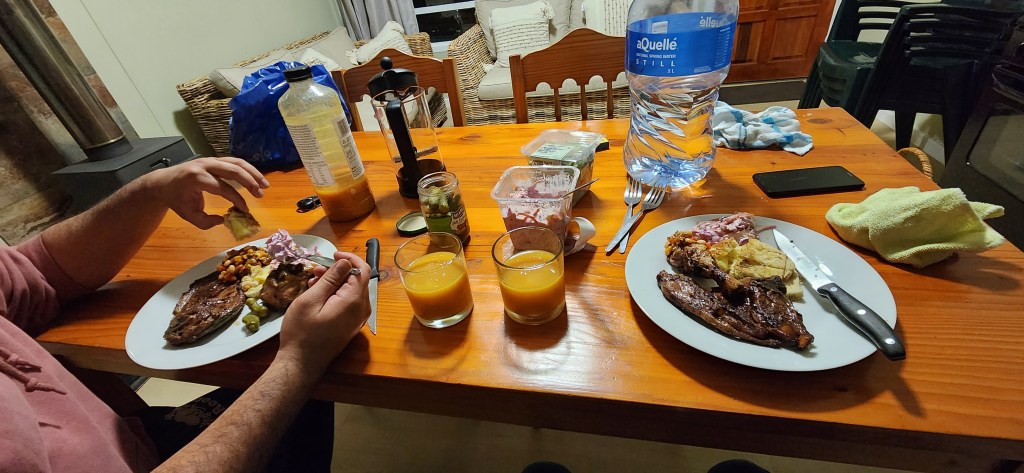 Our braai feast: boerewors, lamb chops, chicken, salad, and of course, the quintessential South African braai staple—the good old braaibroodjie. A toasted sandwich done the only way that matters: on the fire. Two slices of bread, layered with cheese, tomato, onion, and chutney, buttered on the outside and toasted over the coals until golden and gooey. Crisp on the outside, melted and smoky inside. I can still smell the braai meat and taste that braaibroodjie. Lekker!