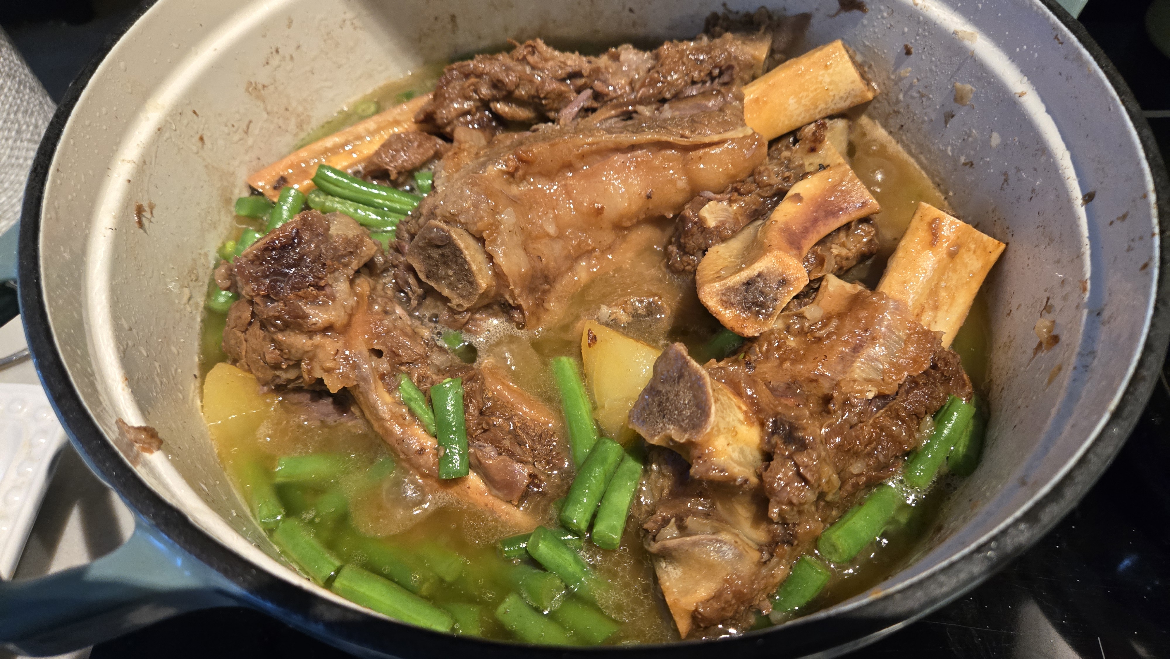 This recipe is also a bit of a play on a traditional South African green bean bredie (Afrikaans word for stew, with its originates from Cape Malay cuisine), usually made with lamb. But this time, I swapped the lamb for Canadian beef back ribs (from my favourite place, Costco 😆) and honestly, it works beautifully. Same slow-cooked comfort, just a different kind of richness.