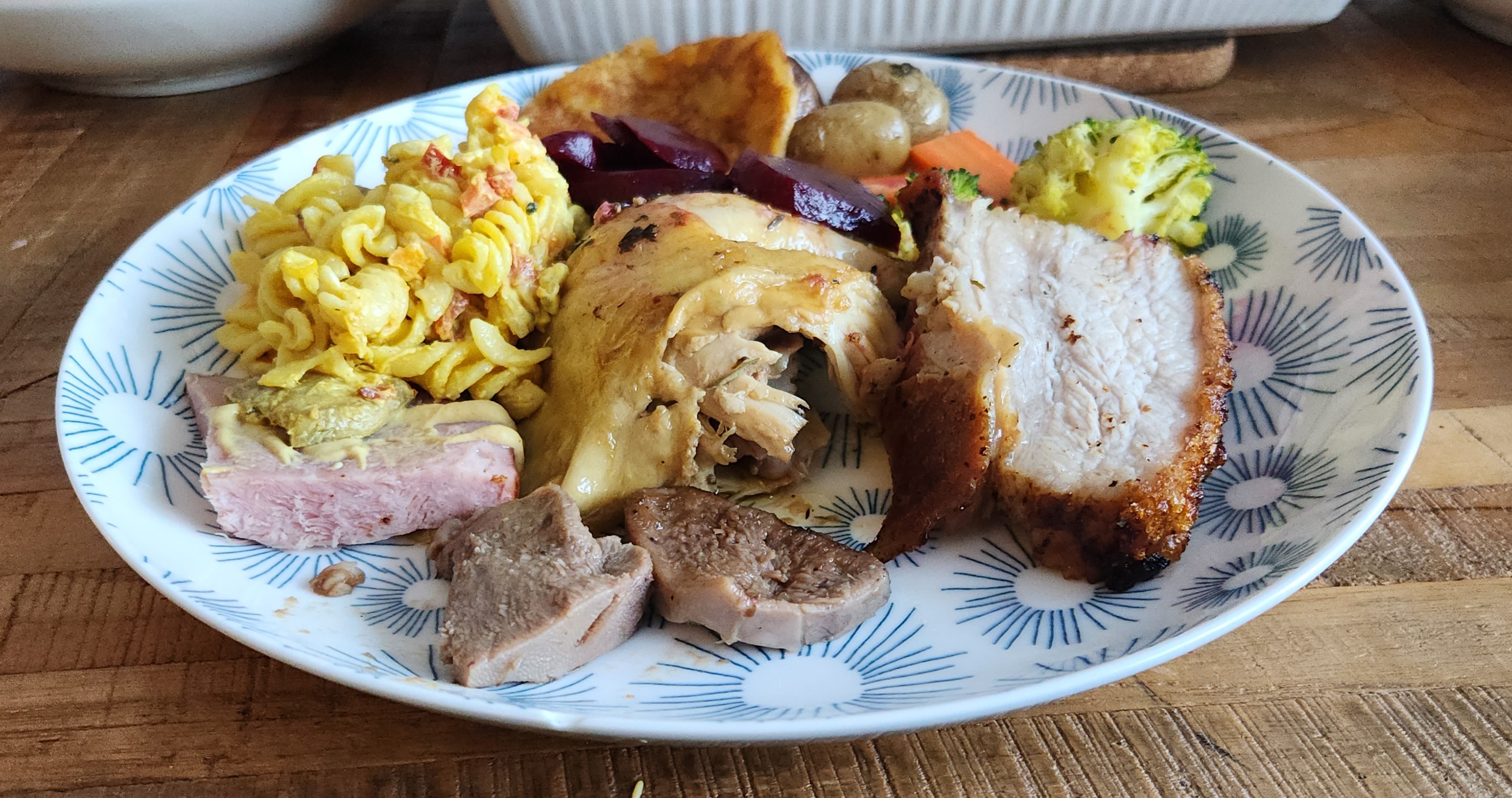 So we started creating our own Christmas lunch menus. We thought about the dishes we both grew up with, and those we didn’t. The mains often overlapped easily. Beef tongue, gammon, roast beef. Those felt familiar to both of us.