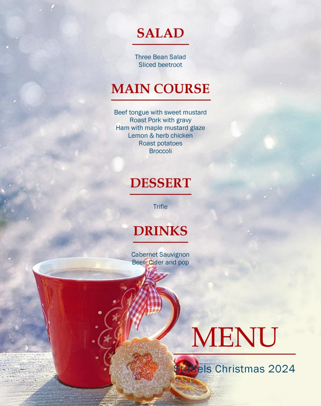 Toronto Christmases are cold, but there is a coziness that comes with that. The city slows down. Streets are quieter. Homes feel warmer. Drinks changed too. Gone were the summer punches and soft drinks. In their place came mugs of hot chocolate, red wine, and Baileys. The food still anchored the day, but the rhythm was different. Slower. Softer.