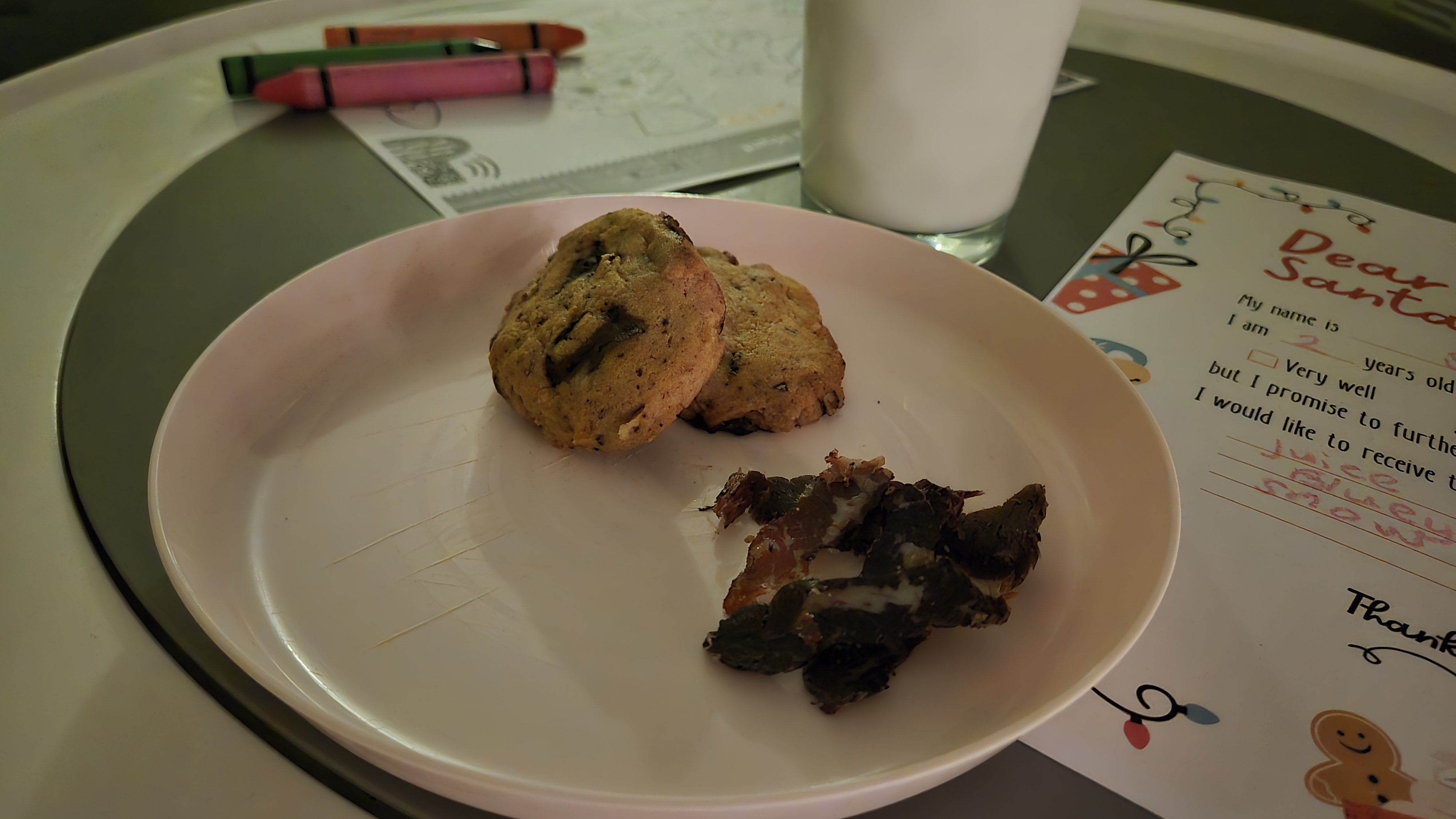But this Christmas, we also made space for something new. Instead of just leaving cookies out, we decided to bake them together. We baked Santa chocolate nut Christmas cookies. Soft, chocolatey, nutty, and very delicious. My little one had the best time. There was flour everywhere, a bit of a mess, and lots of excitement. We both enjoyed the magic of it, baking together and getting ready for Christmas in our own small way.